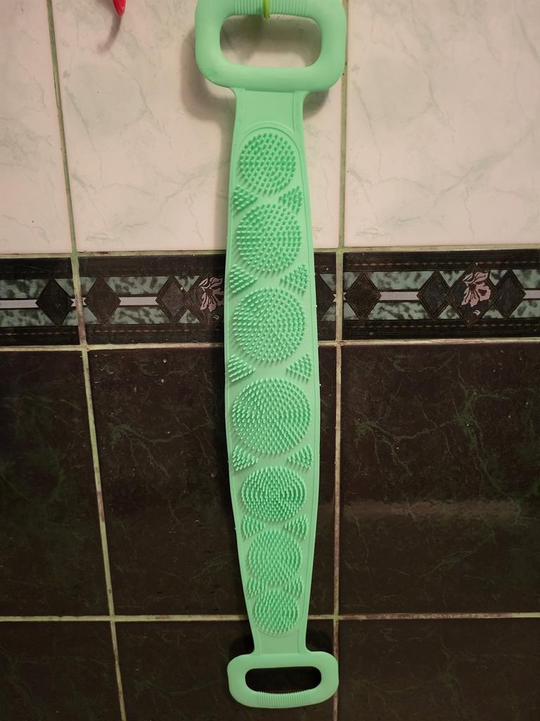Artifact de frecare cu silicon pentru baie din spate 60 cm lungime prosop de baie care freca spatele prosop de baie puternic cu două fețe pentru frecare cu noroi cenușă