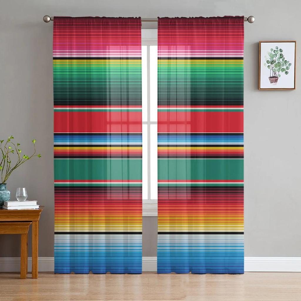 Perdele transparente pentru dormitor cu dungi mexicane colorate, decorațiuni de vacanță, perdea din tul din voal