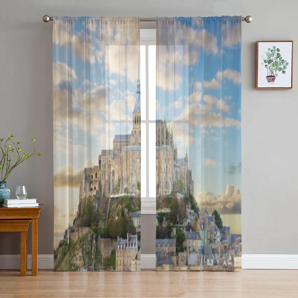 În apropiere de Mont Saint Michel la apusul soarelui Franța Perdele din tul transparent pentru sufragerie Decorare bucătărie Voile Organza Perdele