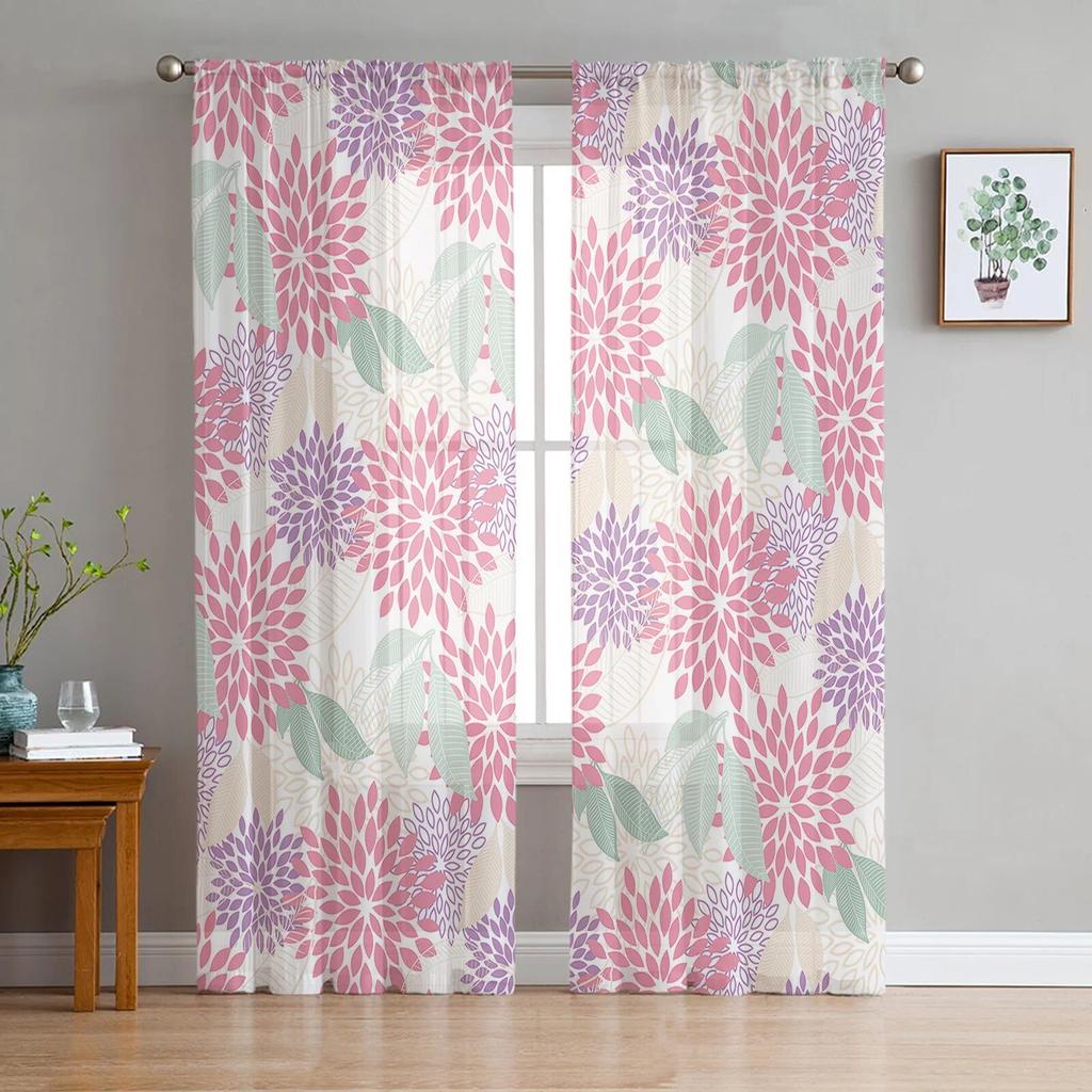 Perdele din tul cu model abstract cu flori de plante pentru sufragerie, bucătărie, dormitor, tul transparent pentru cafenea, hotel, decor modern acasă