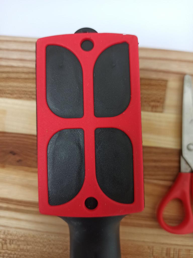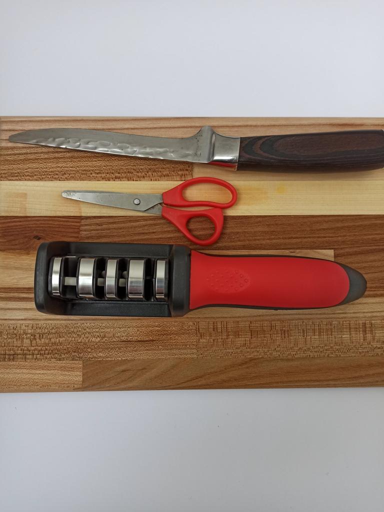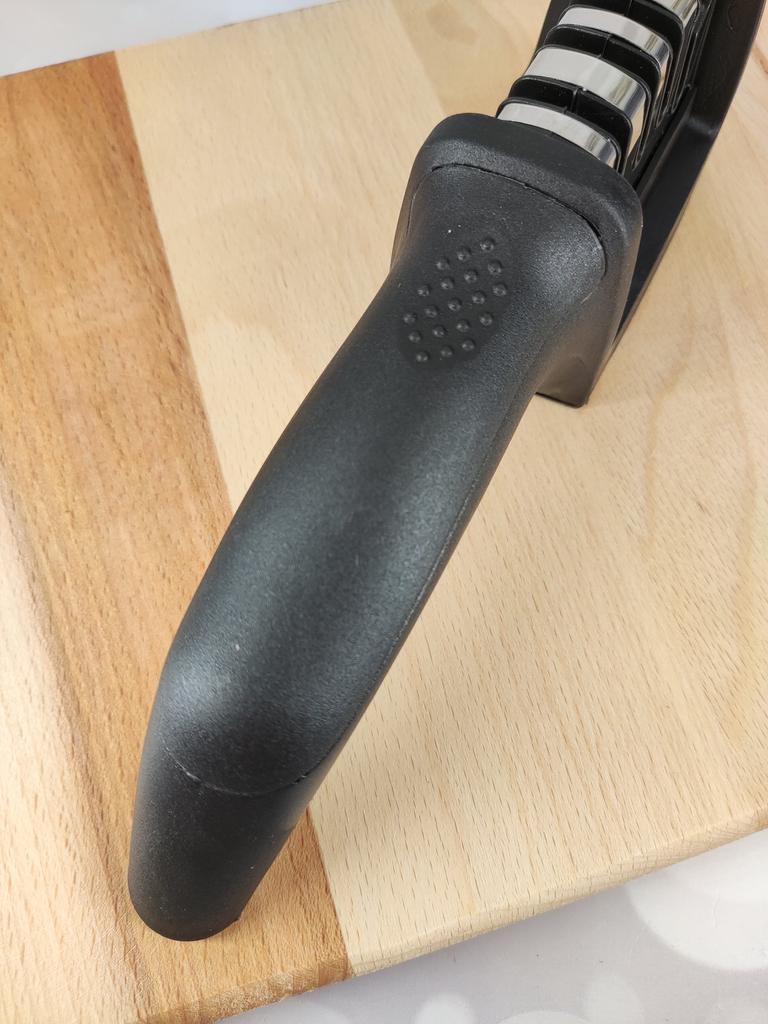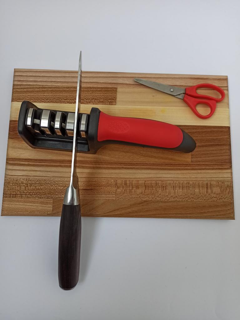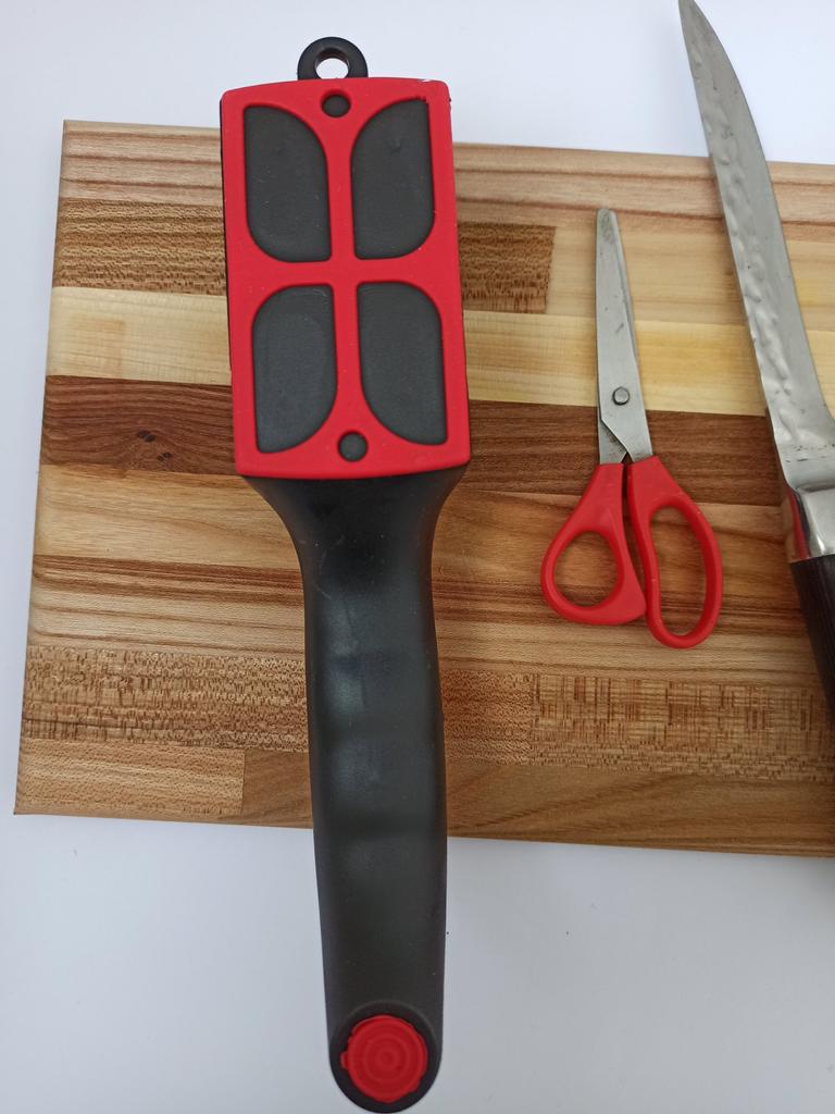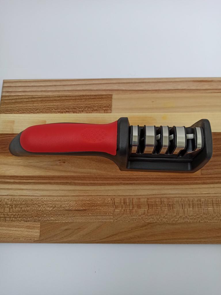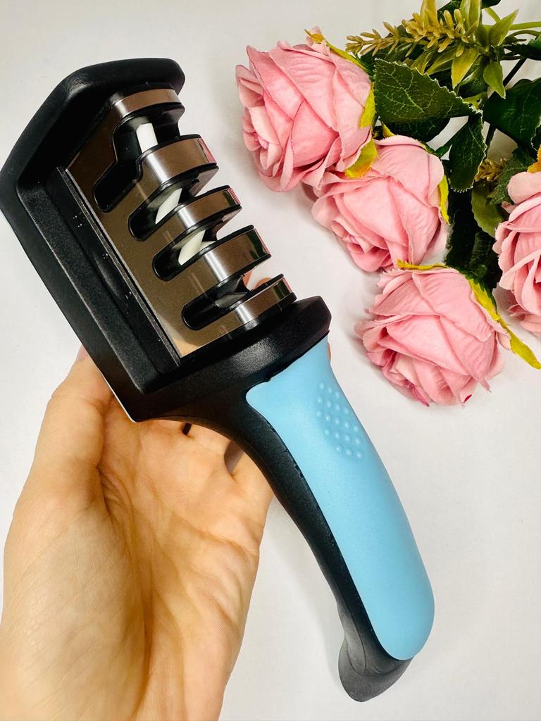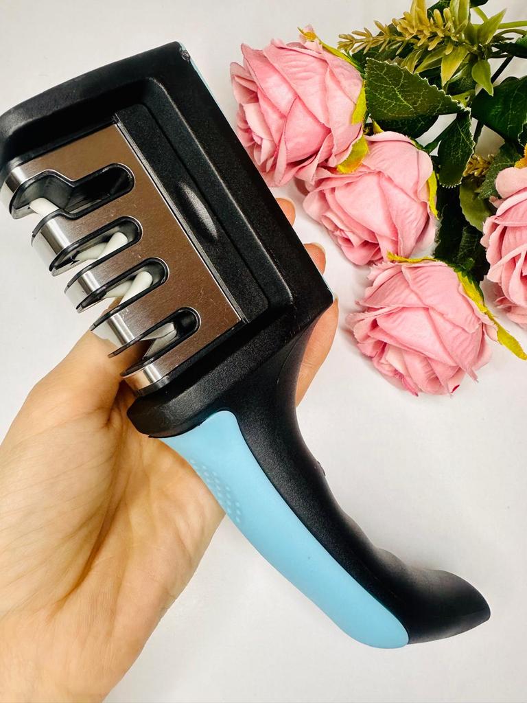 Evaluez excelent ascuțitorul pentru cuțite și foarfece! Chiar își face treaba bine și repede. Patru caneluri interschimbabile permit ascuțirea convenabilă chiar și a celor mai complexe unelte. Mânerul ergonomic cu orificiu pentru agățat este un plus excelent, făcându-l ușor și convenabil de depozitat. Ascuțitorul este din plastic, are fundul din acoperire anti-alunecare, este posibil să se instaleze caneluri din diferite părți. Pentru un astfel de preț, cu siguranță merită fiecare grivnă! De aceea am oferit întregii mele aceste ascuțitoare minune 😉