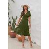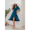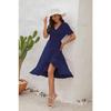 Rochie de vară pentru femei de dimensiuni plus mari, cu decolteu în V, cu talie înaltă, rochie cu cravată, culoare uni, rochie lungă cu mâneci scurte, rochii de călătorie de vacanță