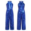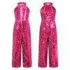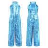 Salopetă de concurs cu paiete strălucitoare pentru copii, fete, fără mâneci, pantaloni largi, salopetă dintr-o singură piesă pentru dansuri de petrecere
