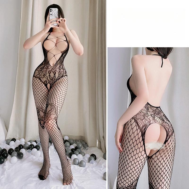 Lenjerie din dantelă transparentă Body cu plasă transparentă pe coapsă transparentă Salopetă pentru femeie din plasă elastică cu crotch deschis sexy