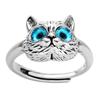 Moda de culoare argintie Fat Cat Blue Eyes Inel drăguț pentru bărbați Retro albastru acrilic inel de cuplu femei petrecere bijuterii cu ridicata