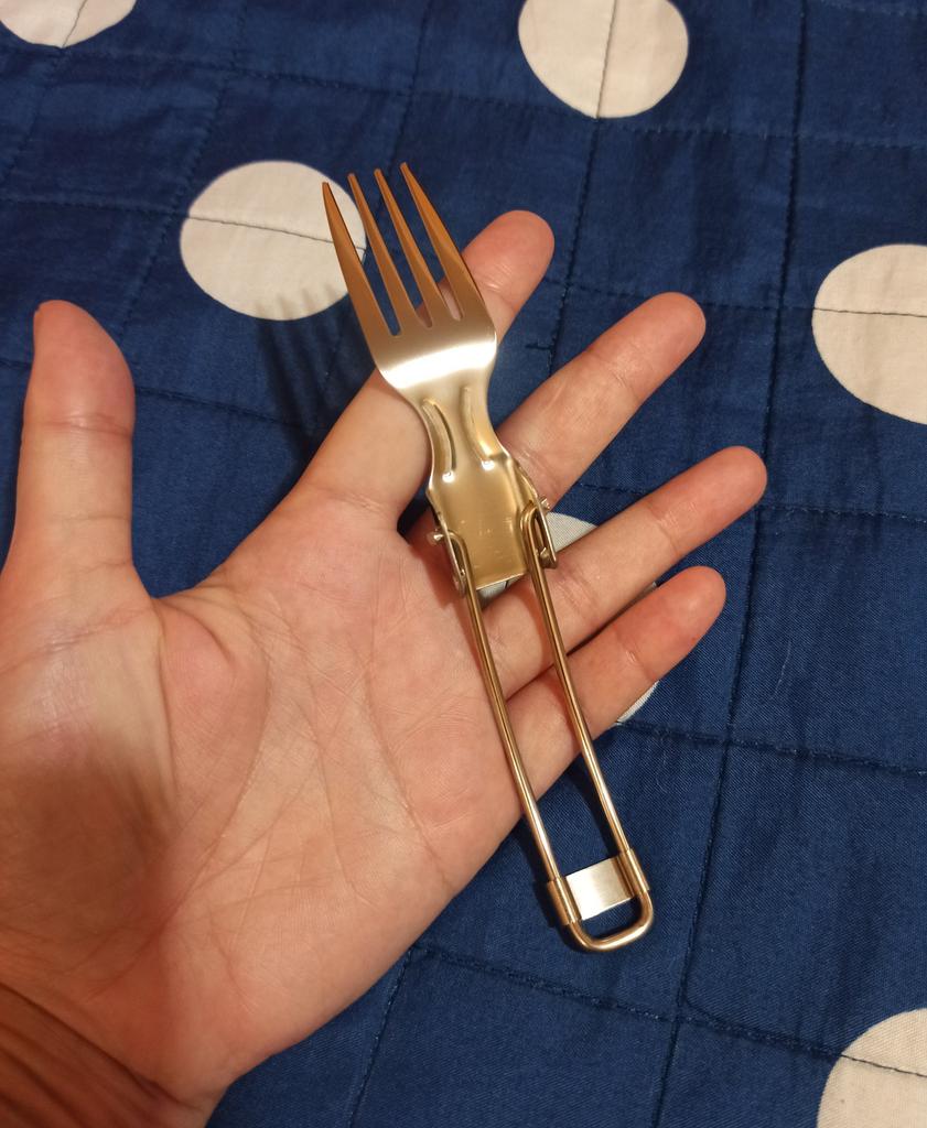 Furculiță bună. Metalică, rezistentă, dar ușoară. Excelentă pentru drumeții. Am pierdut deja una, aceasta este următoarea 😄