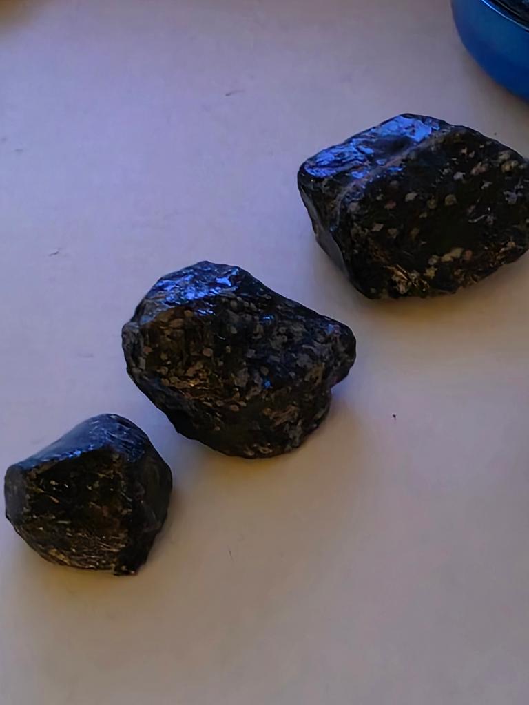 Exemplare bune de obsidian de zăpadă. Pe două bucăți obsidianul în sine abia se vede, dar pe a treia pentru colecție este un desen foarte bun