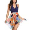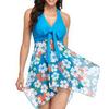 Moda Femei Dimensiuni Plus Fusta din plasă cu cravată încrucișată Bikini despicat Costum de baie cu imprimeu floral