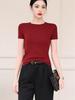 Tricou cu mânecă scurtă din bumbac, culoare uni, umăr drept, subțire, cu gât rotund, pentru femei, primăvară și vară 2024, stil nou temperament, pulover interior.