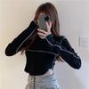 WTEMPO Tricouri cu mânecă lungă pentru femei, cu gât O, mulate, versatile, topuri de damă, uni, clasice coreene, de primăvară, de zi cu zi, de bază, populare