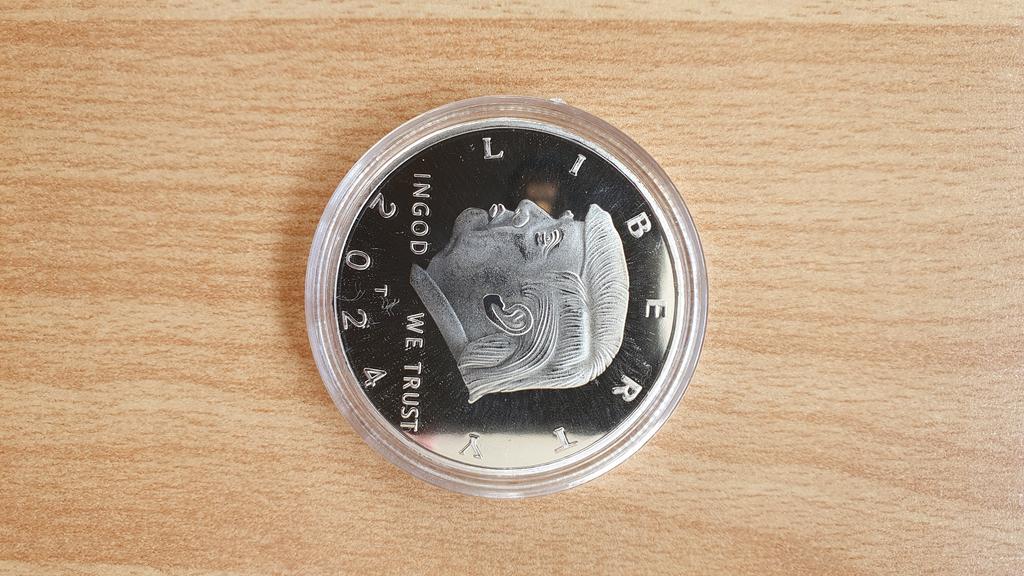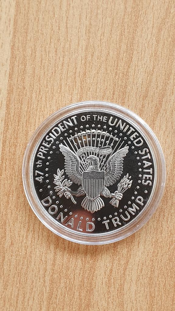 Arată-ți credința în potențiala sa revenire la președinție în 2024, în calitate de cel de-al 47-lea președinte al Statelor Unite, afișând cu mândrie această monedă alături de suvenirurile tale preferate.