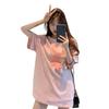 Tricou pentru femei de lungime medie, imprimeu desen animat, gât rotund, culoare contrastantă