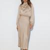 2. Decolteu în V adânc, burtă ascunsă, croi jos, talie înaltă, design sexy, rochie strânsă.