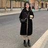 Jachetă lungă, neagră, caise, pentru femei, groasă de iarnă, în stil coreean, catifea, de lungime medie, de lână, jachetă solidă pentru damă de birou