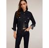 Costum clasic de damă Phardi de culoare bleumarin, două piese - sacou și pantaloni.