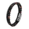 Brățară din piatră naturală cu mărgele ochi de tigru vulcan pentru bărbați și femei Brățară din frânghie din piele de vacă Bijuterii de mână