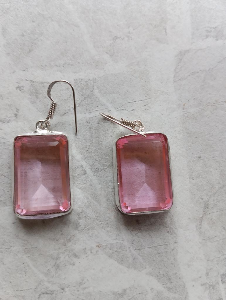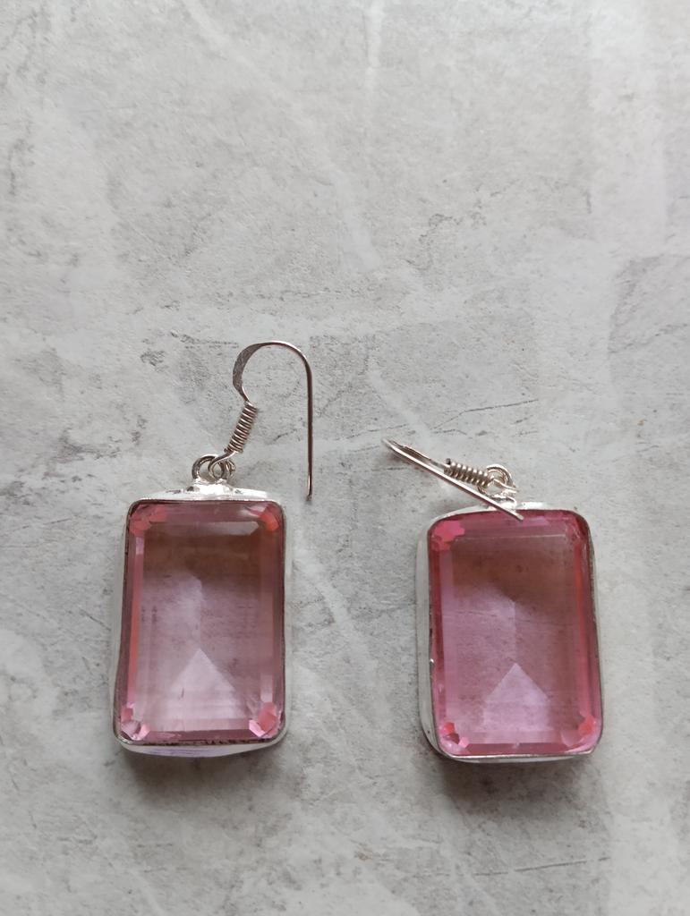 Cercei din argint 925, lucrați manual, cu piatră prețioasă naturală Kunzit roz, 4,75 cm, O5F45