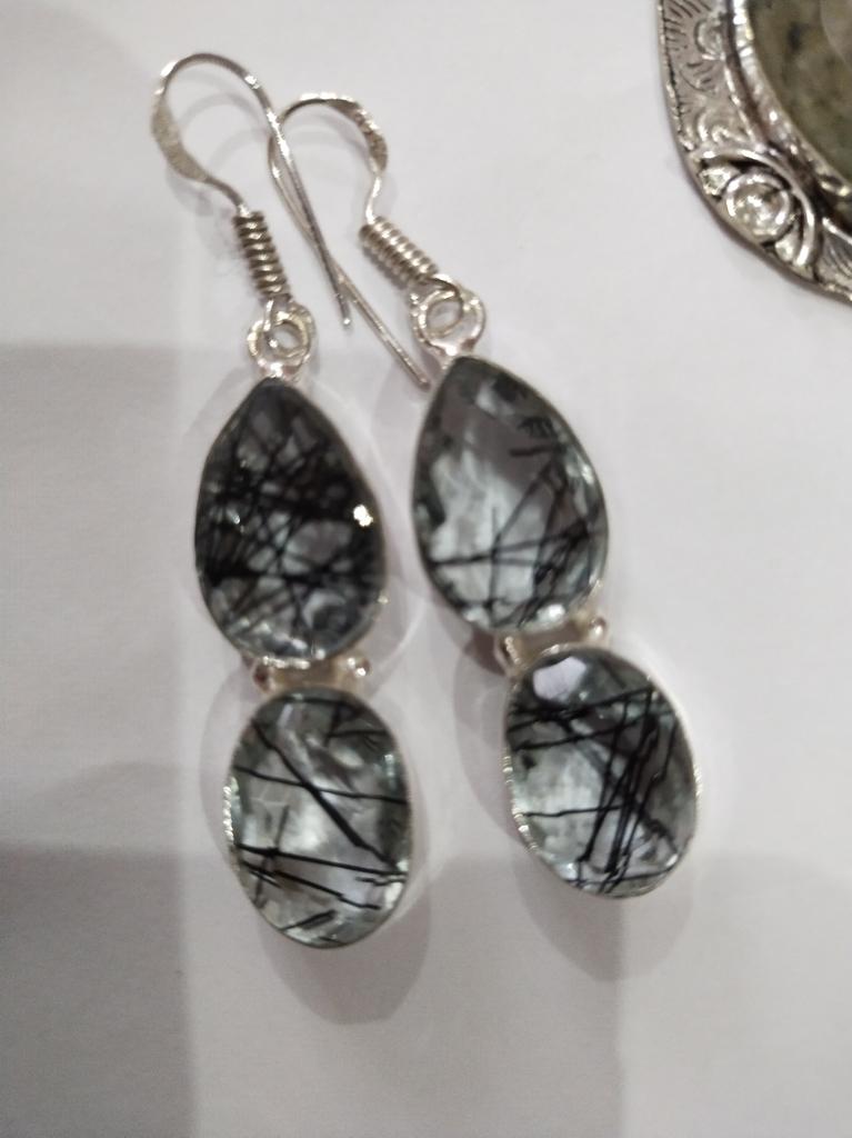 Cercei din argint 925, lucrați manual cu piatră prețioasă naturală de rutil negru, 2,17" n4p58