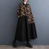Rochie de damă de primăvară și toamnă, largi, mărime mare, imprimat, îmbinare, de lungime mijlocie, retro, literare, cu mânecă lungă