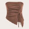 Casual Solid, fără bretele, fără mâneci, cu tub, Topuri neregulate cu fante laterale, cu șnur, tanc subțire, cu umeri, sexy, pentru vacanță de vară.