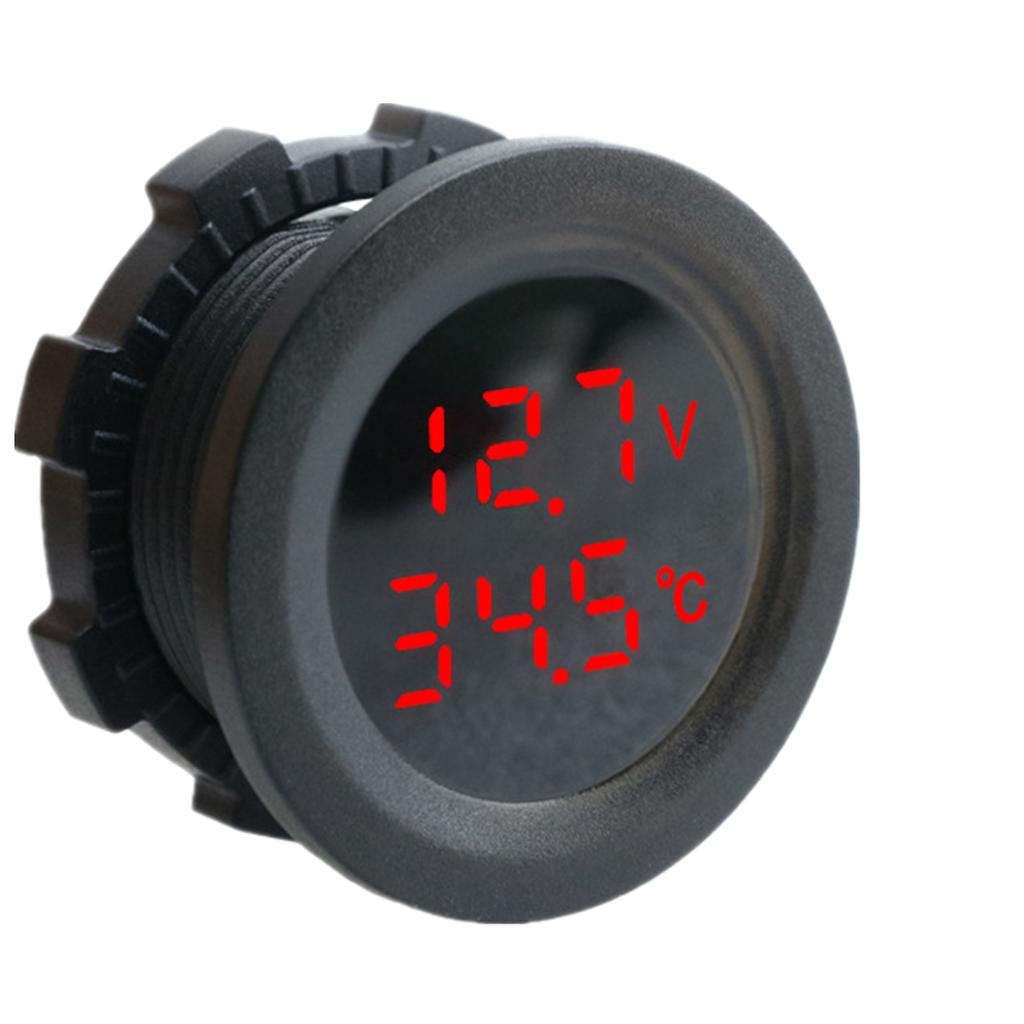 Voltmetru rotund de temperatură pentru mașină 2-în-1, 12-24V, afișaj automat de testare a tensiunii, măsurare digitală pentru mașină, motocicletă, barcă, iaht, voltmetru