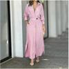 Rochie de Toamnă Mărimi Mari pentru Femei Albă Casual Guler V Rever Mânecă Lungă Rochie Femeie Fustă Lungă Buzunar Rochii Eleagante pentru Petrecere
