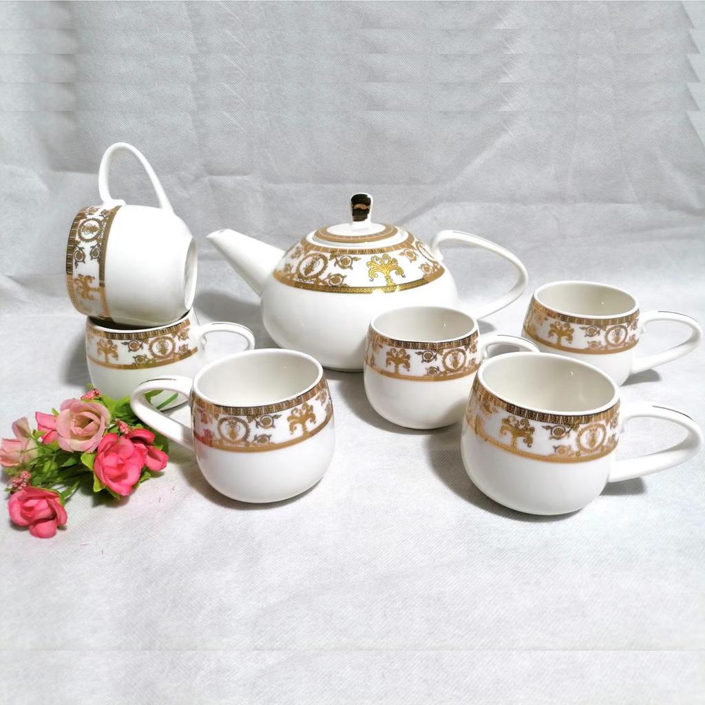 1 buc set ceainic si cani de ceai Set de ceainic cu 8 capete din ceramica in stil european de capacitate mare, simplu, fierbător de apă rece și caldă, set de căni de apă caldă și rece Creative Ins simplu
