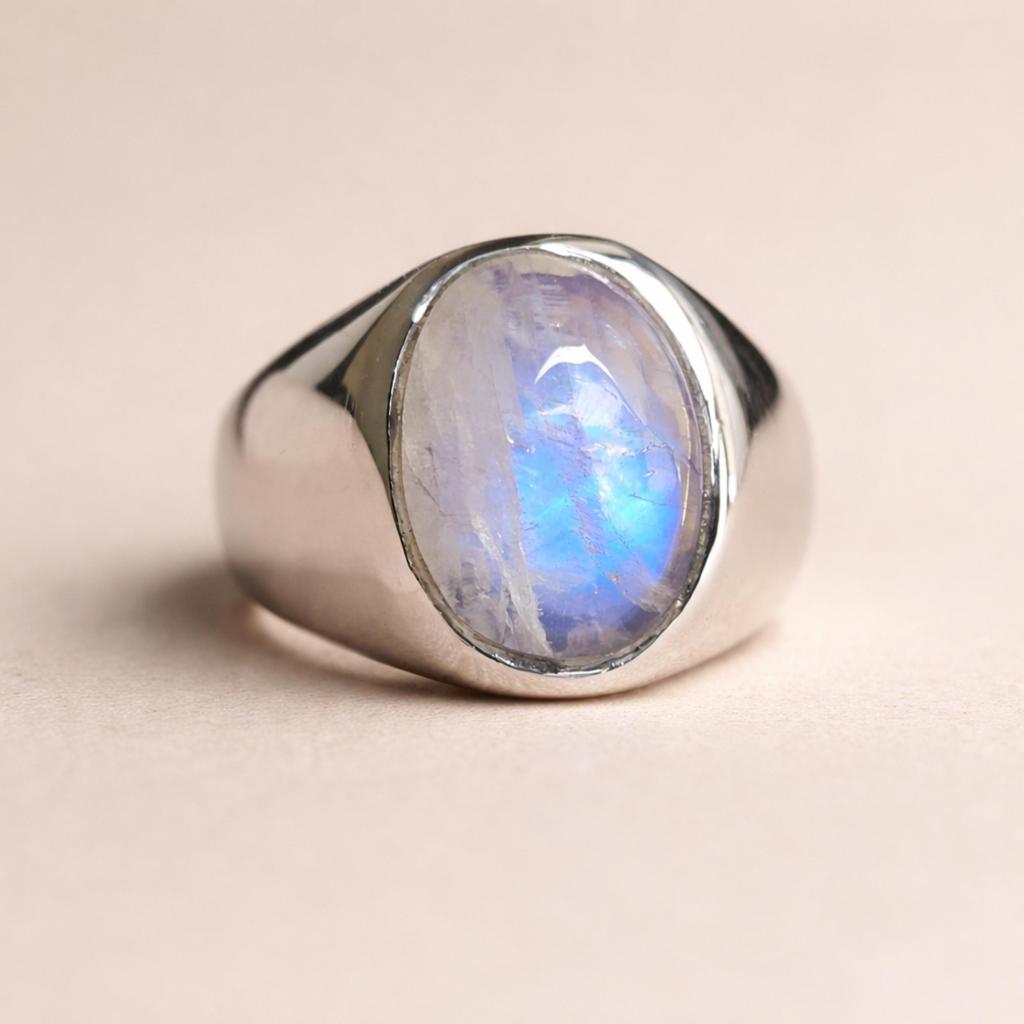 Inel cu piatră de lună curcubeu, inel cu sigiliu, piatră prețioasă în formă ovală, argint solid 925, inel pentru bărbați, inel pentru femei