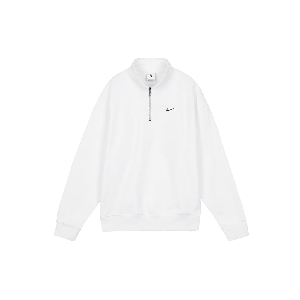 Nike Solid Logo Half-Zip Long Sleeve Sweatshirt Men Tops White DQ5210-100