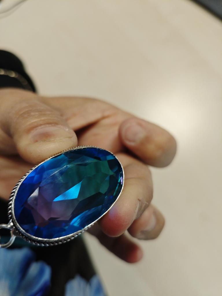 Pandantiv cadou din argint 925, realizat manual, turmalina bicolora naturala 2,01 inchi