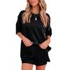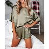 Pijamale din satin de culoare solidă de vară pentru femei, serviciu la domiciliu, pantaloni scurți cu mâneci scurte, costum din două piese neregulat