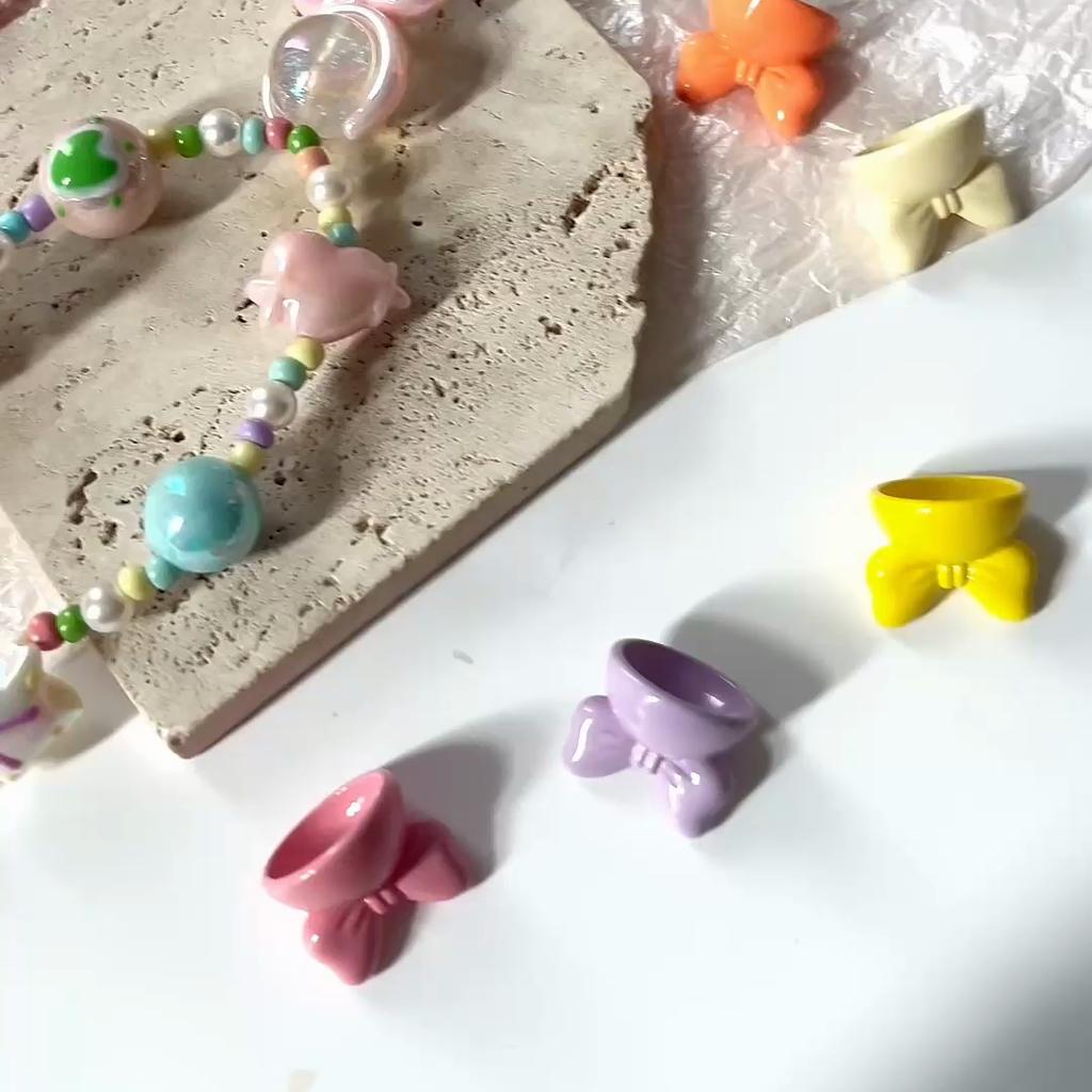Acrylic Rabbit Bow Beads Charm Loose Spacer Beads for DIY 4pcs