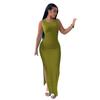 Proiecta: Îmbrățișați simplitatea cu această rochie de culoare solidă, cu un gât rotund și un design subțire al taliei. Silueta in forma de T iti imbunatateste silueta, in timp ce fanta inalta de la tiv adauga o nota de alura, facandu-l o alegere versatila pentru ocaziile de vara.