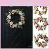 Coroană de trandafiri de flori de 35 cm Ghirlandă de Crăciun Fericit Decor pentru agățat ușă pentru petrecere