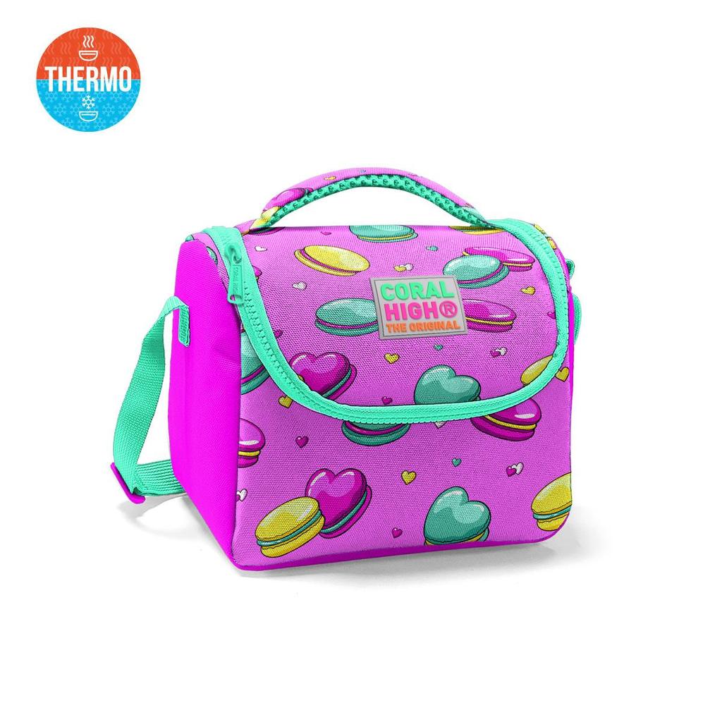 Coral High Kids Açık Pembe Su Yeşili Makaron Desenli Thermo Beslenme Çantası 11701