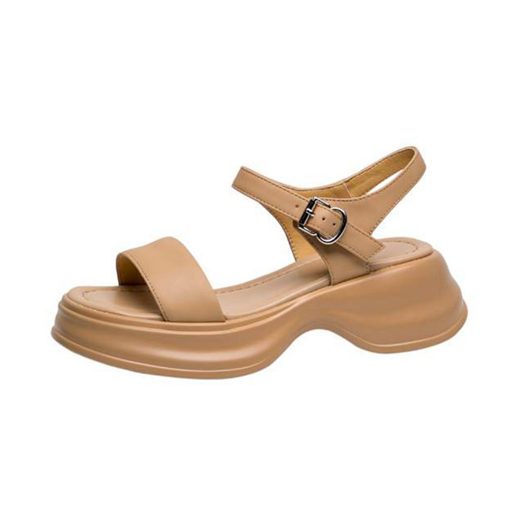 Krazing Pot Sheepskin Peep Toe Thick High Heels Summer Shoes Buckle Straps Platform Casual Women Sandals