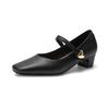 Krazing Pot Piele de vacă Deget pătrat Gros Toc înalt Pantofi de toamnă de vară Decorații cu butoane rotunde Office Lady Femei Pompe