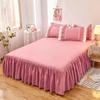 Fustă de pat vopsită simplă 1 bucată cu volane pentru cearșaf de pat de un singur/queen/king size, verde elastic(Feta de perna necesita comanda)