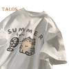 Îmbrățișați simplitatea și drăgălașul cu imprimeurile adorabile și silueta relaxată a acestui tricou, emanând o atmosferă fermecătoare și relaxată, perfectă pentru diverse ocazii.
