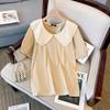 Tricou damă mărime Plus de vară Bumbac cu mâneci scurte Top cu gât de păpușă Tricou simplu