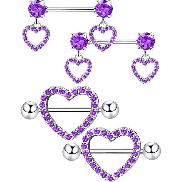 Staligue 2 Pairs Titanium Nipple Rings for Women 14G Nipple Piercing Heart CZ Barbell Body Nipple Piercing Jewelry