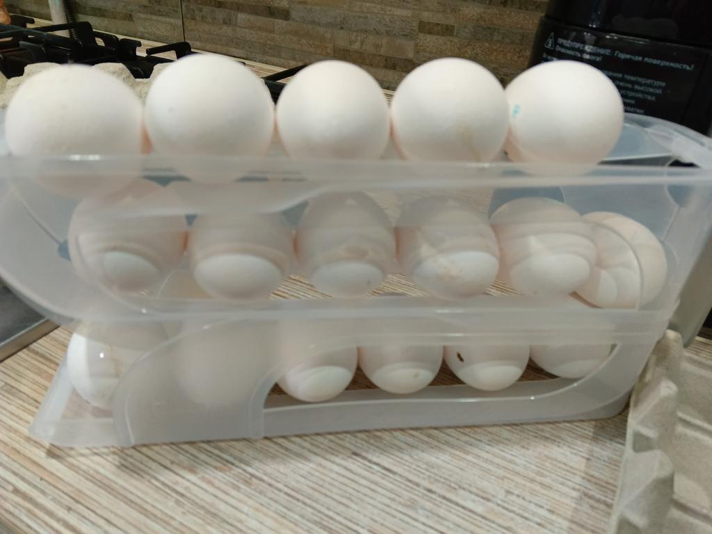 Frumos recipient pentru ouă, ușor de folosit. Adevărat, ouăle nu se rostogolesc singure, trebuie să le împingeți.