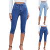 Moda Femei Blugi subțiri Blugi elastici cu manșete Pantaloni tăiați de mărime mare