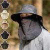 Vizieră de protecție solară cu boruri largi de vară 360° cu mască detașabilă Bărbați Jungle în aer liber Călărie de soare Călărie de pescuit