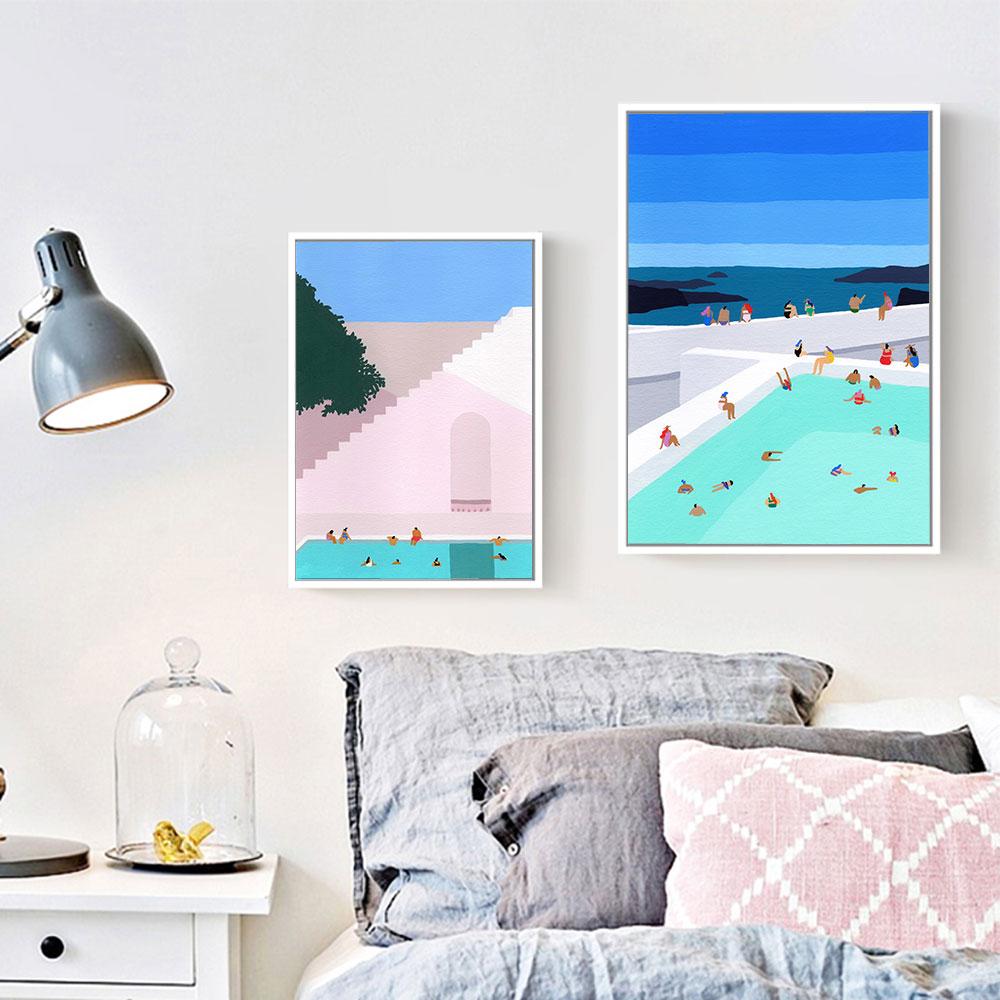 Greece Travel Poster Minimalist Swimming Pool Art Print Nordic Canvas Painting Modern Santorini Wall Picture Bedroom Home Decor