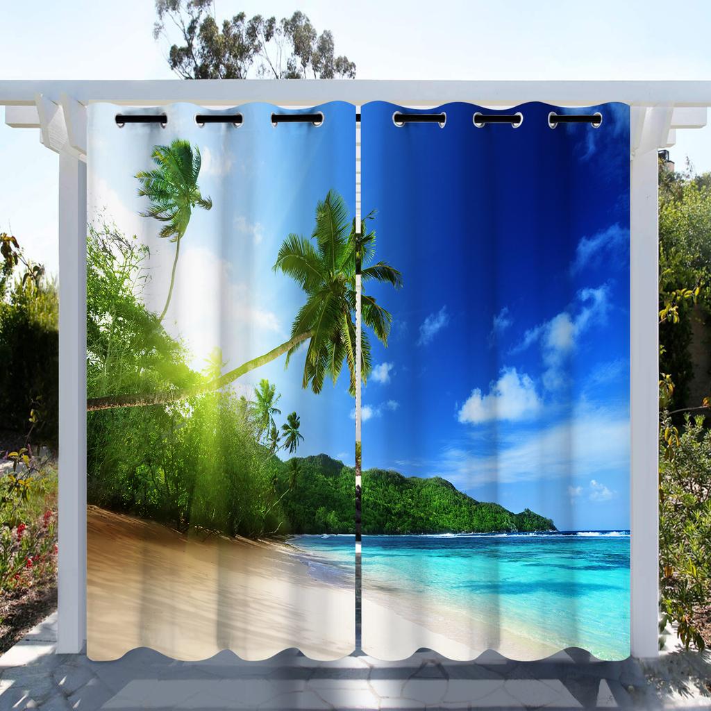 Plajele de nisip din Hawaii și natura marină Imprimare digitală 3D Cortina de soare Camera de zi Dormitor Decorare acasă 2 panouri