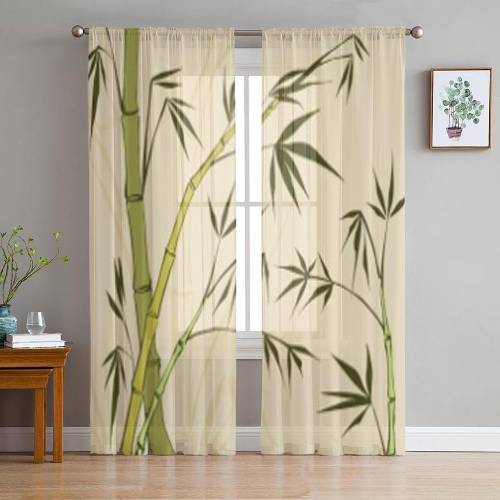 Pictură de Bambus Conține Transparențe Gradienți Tul Perdele Subțiri pentru Decorare Living Bucătărie Perdele Voal Organza