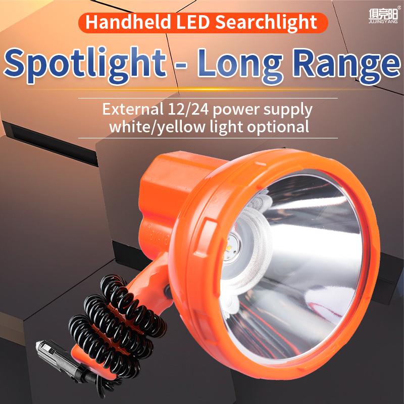 12V Handheld Led Searchlight 100W Strong Light Large Aperture White Light Yellow Light External Battery Outdoor Work Lighting