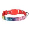 Gulerul pentru animale de companie are mai multe rânduri de strasuri incrustate colorate și un design în culori vibrante, care arată strălucitor și frumos și vă va face animalul de companie atractiv în mulțime.