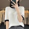 Tricou pentru femei de vară, mătase de gheață, cu mâneci scurte, cămașă din tricot răsucit, cu mâneci cinci sferturi, cu vârf ușor, cu gât rotund